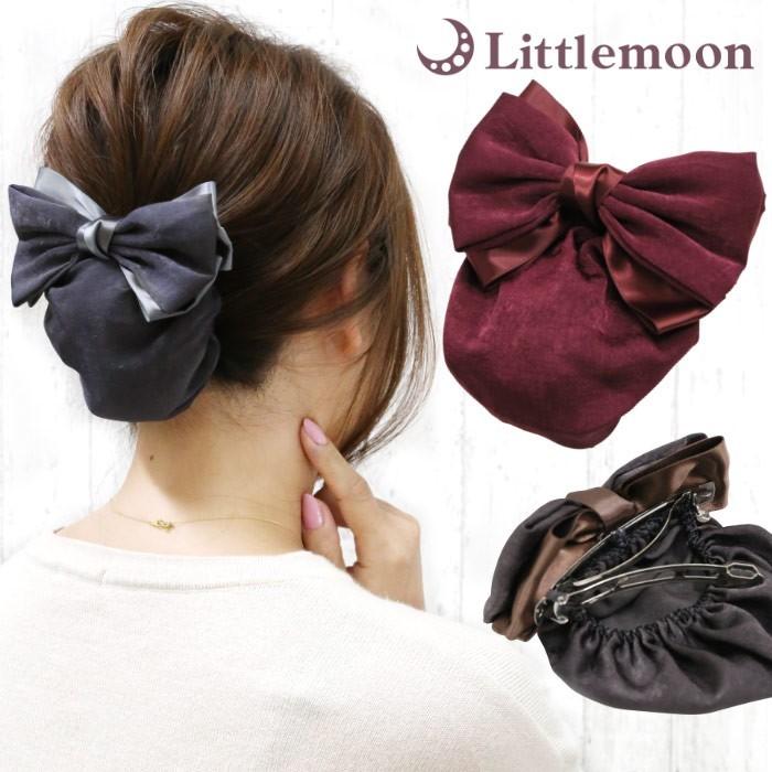 楽天市場 バレッタ アメリー シニョンバレッタ 就活 リボン お団子カバー ブラウン 茶色 ブラック 黒 オフィス 会社 お団子ネット シニョンネット ヘアアクセサリー 髪飾り 簡単ヘアアレンジ まとめ髪 髪型 リトルムーン ヘアアクセサリー